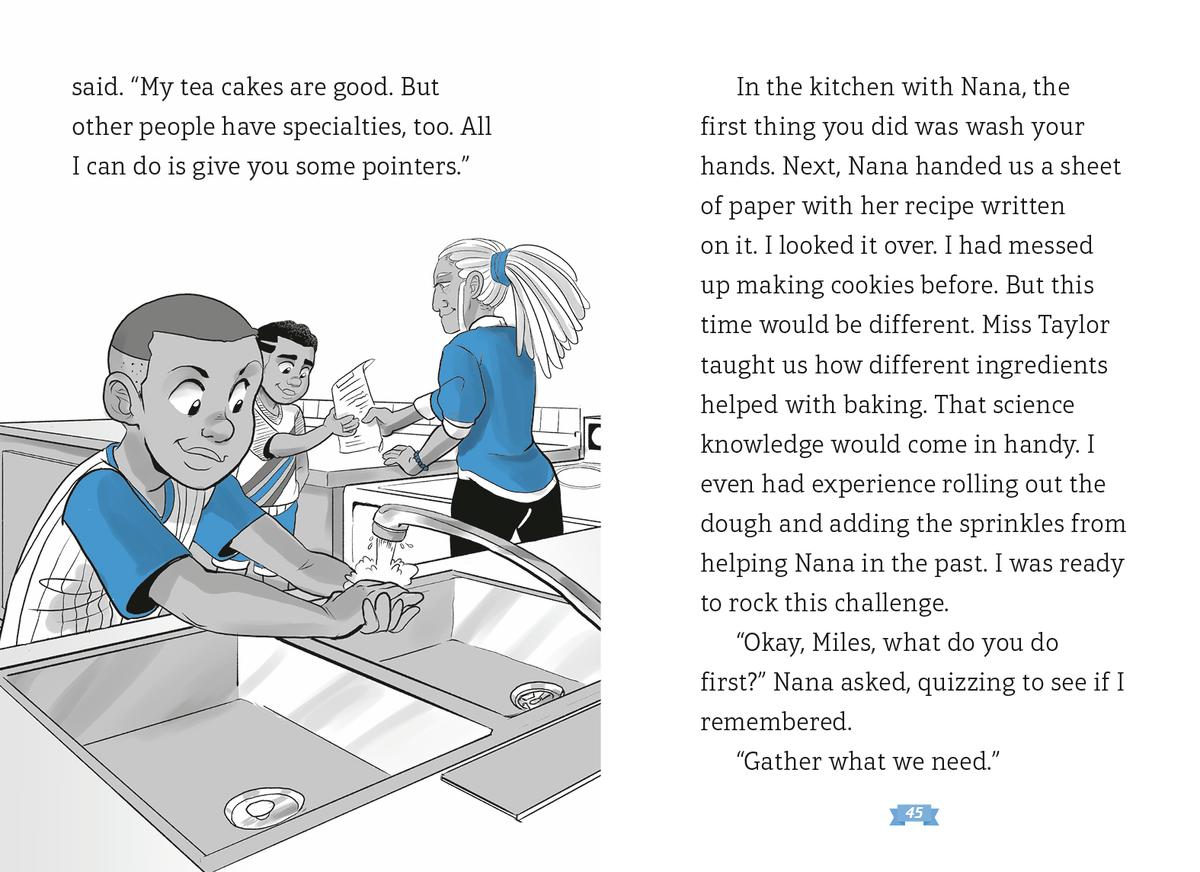 When Miles and his friend RJ team up for their school's bake sale, they embark on a journey filled with sweet treats, friendship, and a dash of science. Miles is confident that Nana's famous tea cakes will win the prize, but he's feeling the pressure from RJ, who wants to win the prize money to replace his mom's treasured keepsake that he accidentally broke. Through baking mishaps and heartfelt moments, they discover that the true recipe for success lies in honesty, teamwork, and adding a special ingredient—love.