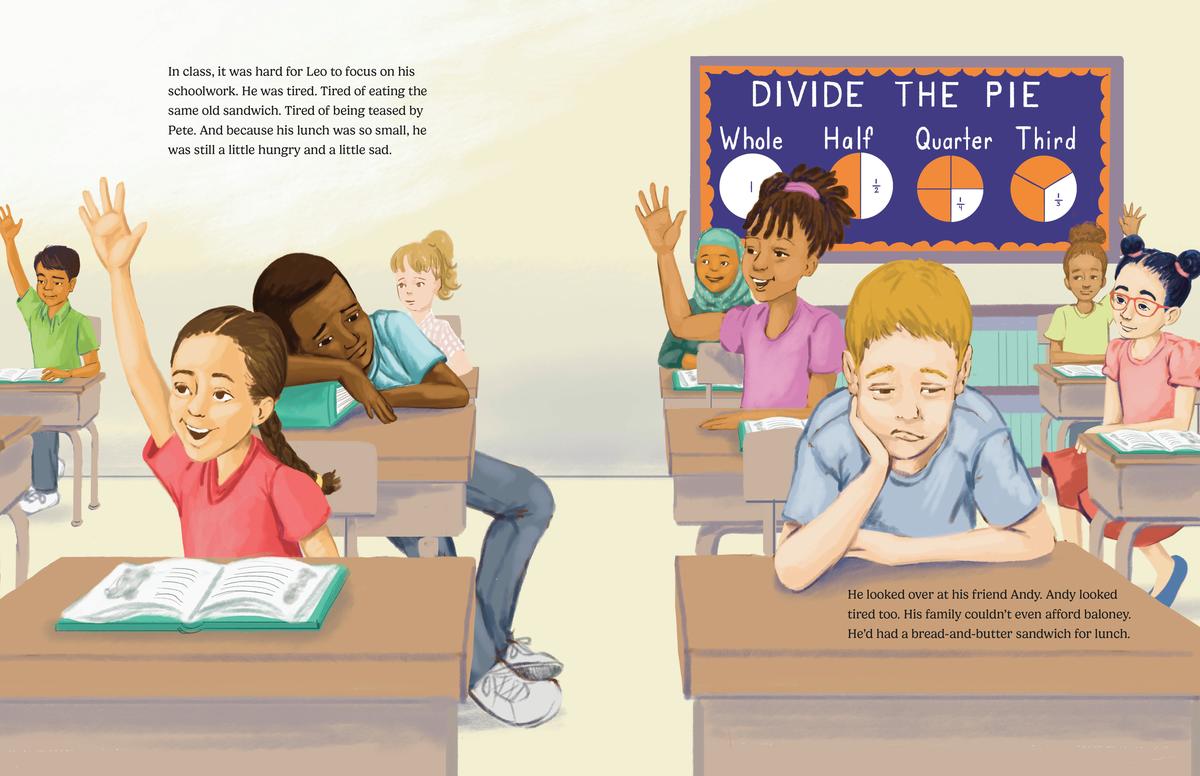 It’s lunchtime at school, and Leo knows exactly what he’s going to have: a baloney sandwich. His mom does the best she can, but sometimes Leo wishes they could afford more than baloney sandwiches. Then one day, the unexpected happens: His mom gets a new job and buys him a lunch box at a yard sale. Suddenly, he’s got something other than a baloney sandwich! Even more amazing, Leo’s delicious lunch begins to multiply, and the more he shares, the more he receives.