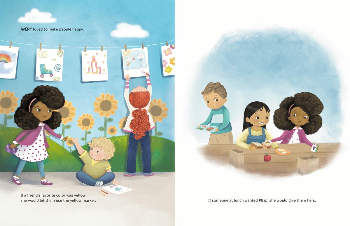 Avery loves to make people happy—so much so that she often ignores her own wants and needs. If a friend's favorite color is yellow, she always gives that friend the yellow marker. If someone wants PB&J for lunch, she gives up her own sandwich.