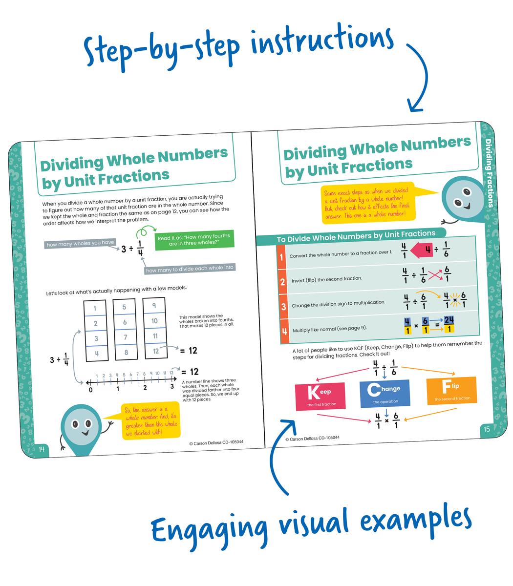 - Step-By-Step Instructions With Engaging Visuals. Step-by-step instructions and examples as well as vibrant visuals help students, teachers, and parents understand math basics such as adding, subtracting, multiplying, and dividing fractions.