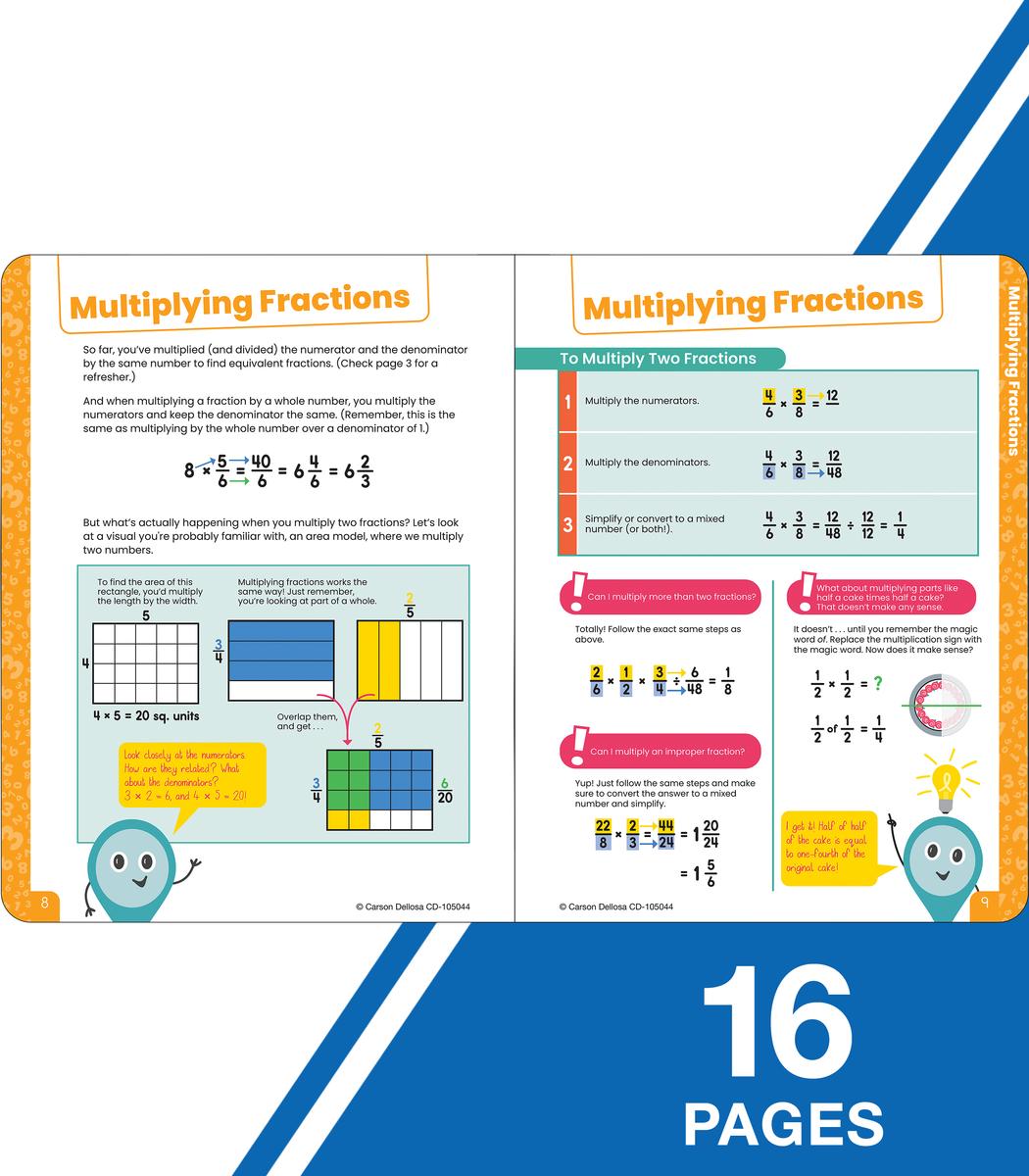 Make learning fun—anywhere, anytime—with Carson Dellosa’s Be Clever Wherever Break It Down Advanced Fractions Reference Book!