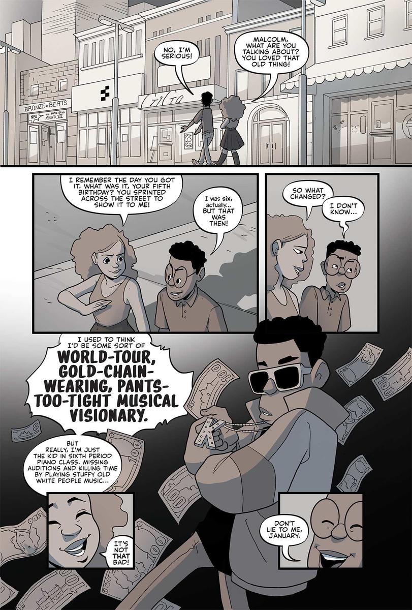 Malcolm soon learns that the only way to free this musician’s soul is by performing the perfect song. With much hesitation, and the help of his lifelong friend January Young, Malcolm embarks on a musical journey across the city of New Bronzeville in the hopes of discovering the perfect song and finding himself as a musician along the way.