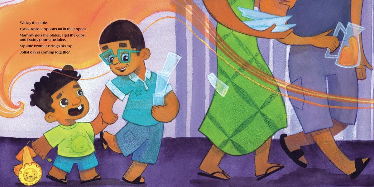 With bouncing text that begs to be read aloud and exuberant illustrations full of momentum, Jollof Day is a celebration of the dishes that bring a family together.