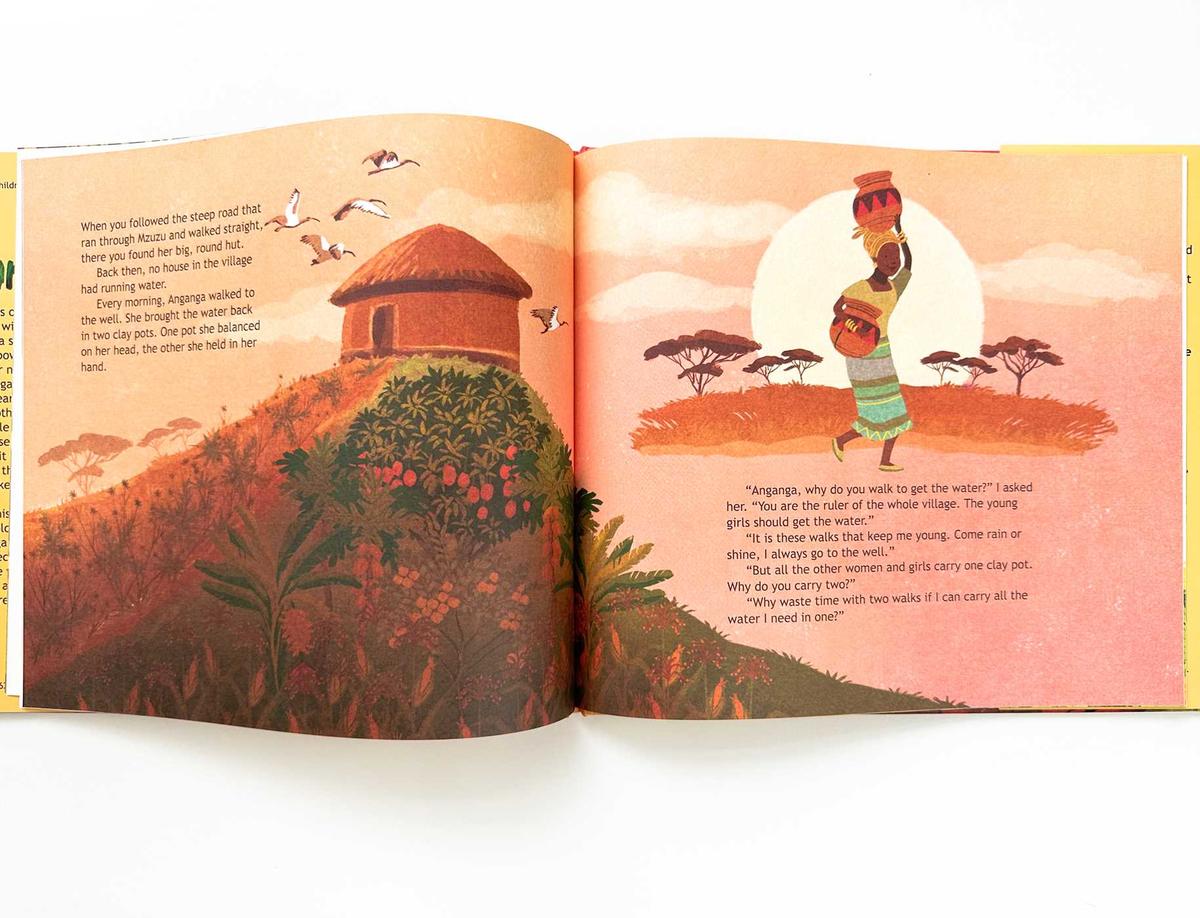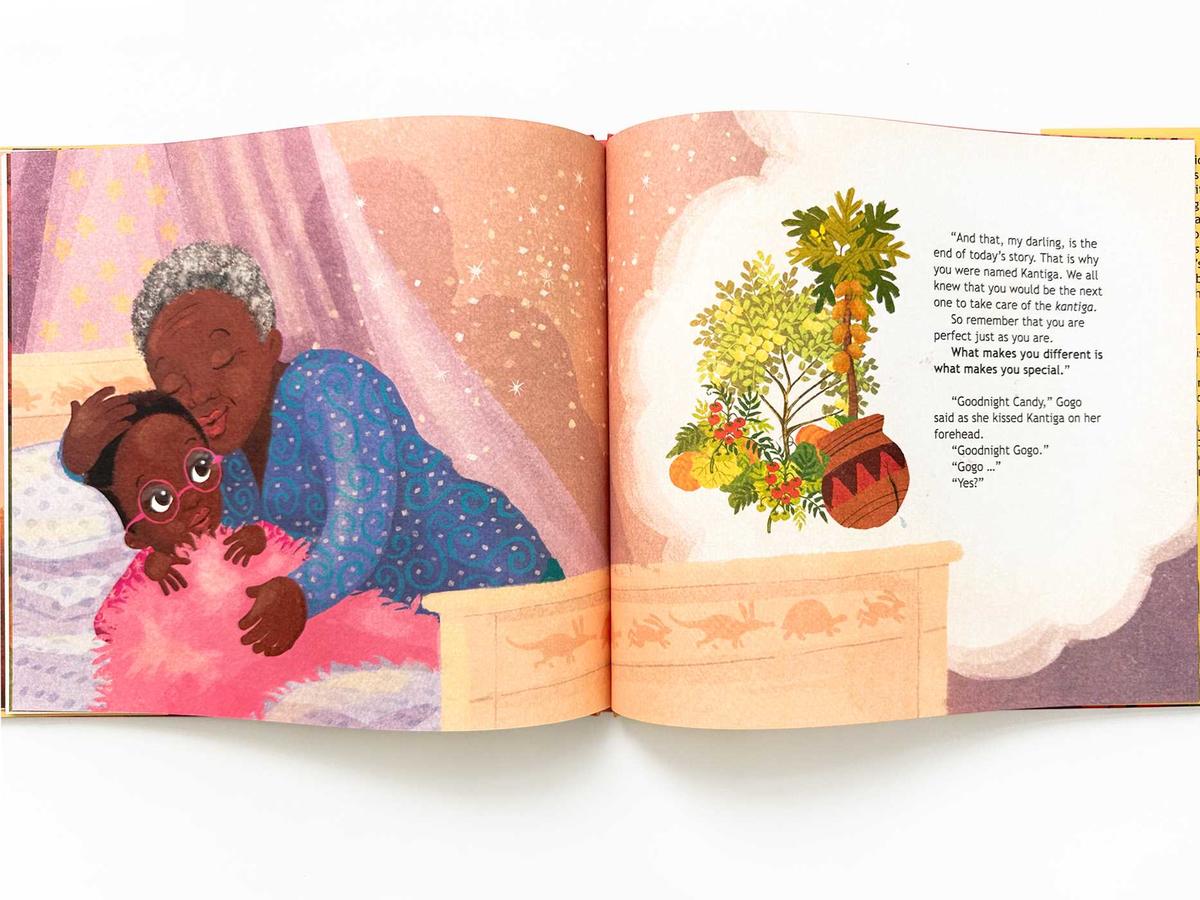 “There was once a beautiful little girl with a heart as big as her name, Kantiga. But Kantiga did not like her name.” Hearing this, her gogo tells her a family tale of the magical clay pot that seems to be useless because it is cracked and broken. We learn how this flaw makes it more than perfect.