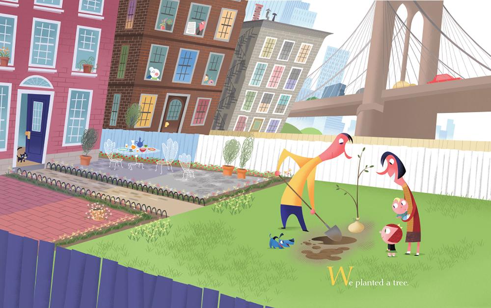 Perfect for springtime reading! In this poetic picture book with environmental themes, illustrated by award-winning artist Bob Staake, two young families in two very different parts of the world each plant a tree.