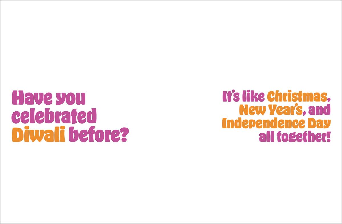 This book was made to teach kids aged 5-9 all about this beautiful celebration and how they can participate – no matter their background. Diwali is celebrated in many parts of the world, and it's for everyone!
