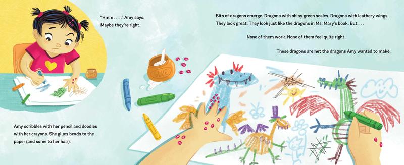 Amy loves craft time at school. But when her teacher asks everyone to make their own dragon, Amy feels stuck. Her first dragon has a long, wingless body, stag-like horns, and eagle claws, but her friends don’t think it’s a