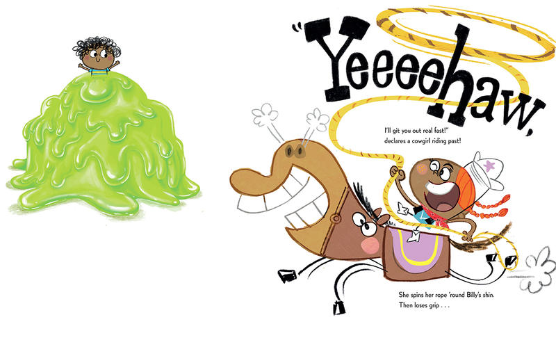 Billy Bloo is stuck in goo.Who will help him, tell me who?Who'll unstick him from this goo?Would you?