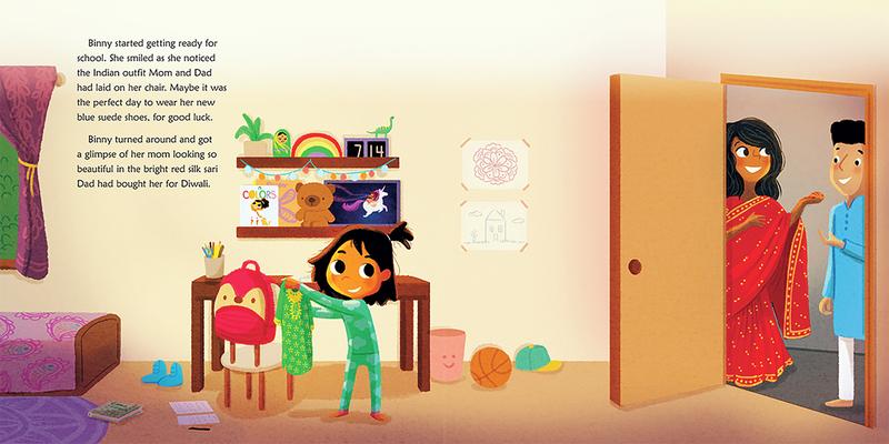 Binny woke up happy but nervous. It was her day to share about Diwali, the Festival of Lights!