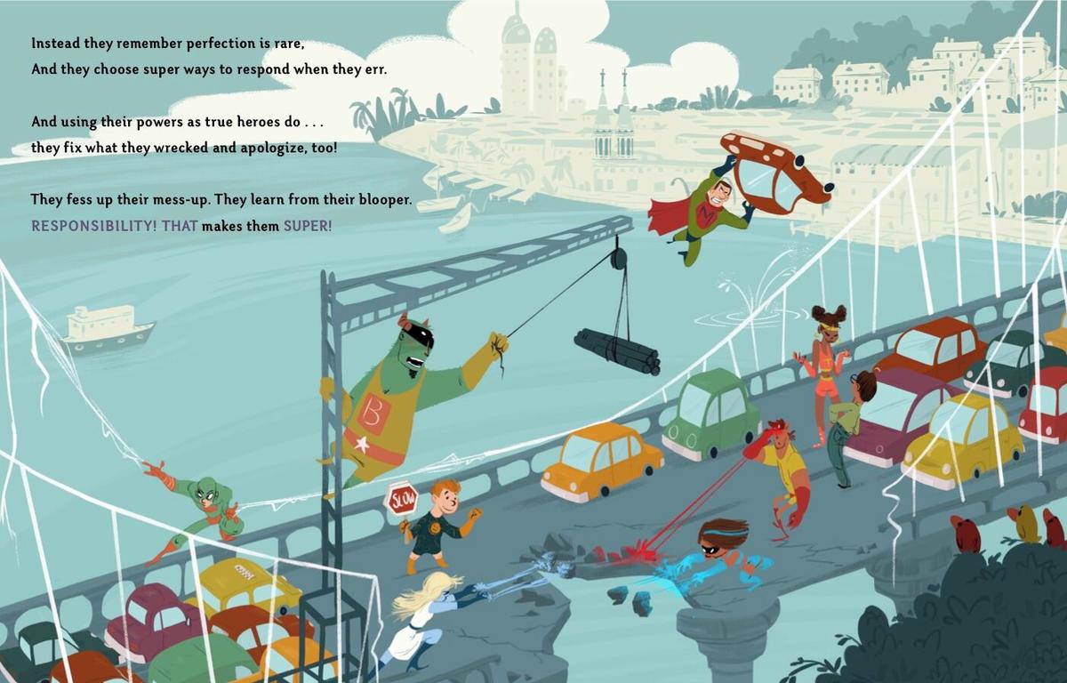 Whether they’ve nabbed the wrong guy by mistake or bashed into a planet while zooming through space, all superheroes ‘fess up their mess-up, get on with their day, and keep on saving the world in the most super way!