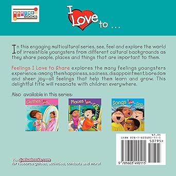 In this engaging multicultural series, see, feel, and explore the world of irresistible youngsters from different cultural backgrounds as they share people, places and things that are important to them. Feelings I Love to Share explores the many feelings youngsters experience: among them happiness, sadness, disappointment, boredom and sheer joy - all feelings that help them learn and grow. This delightful title will resonate with children everywhere.