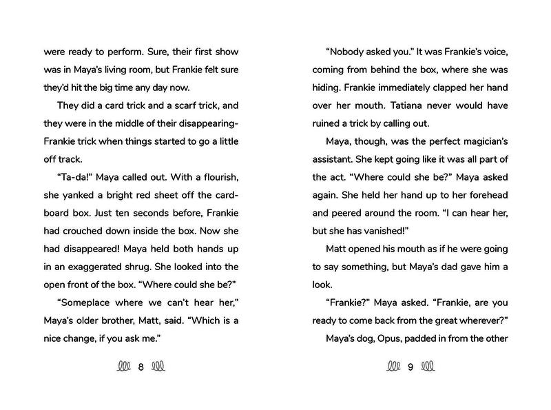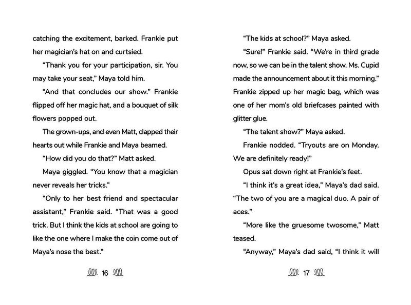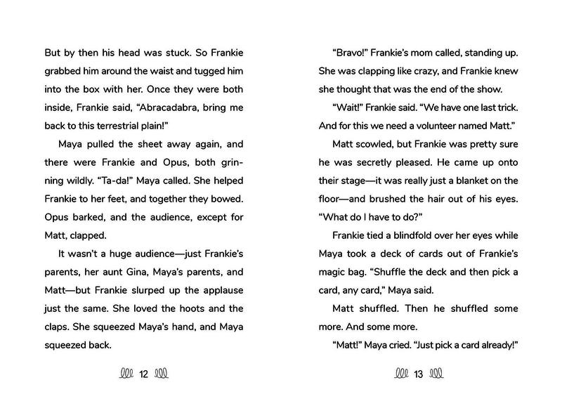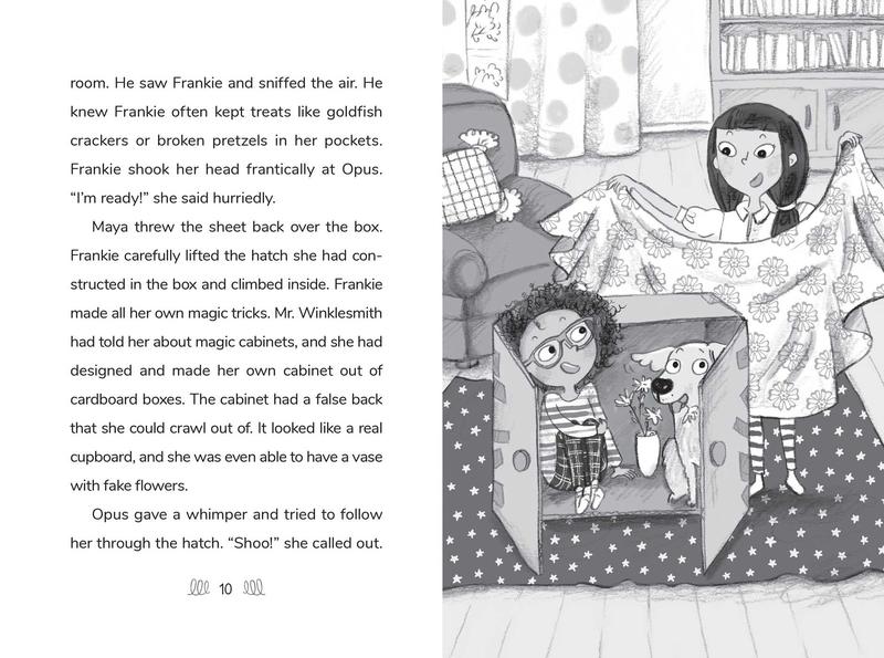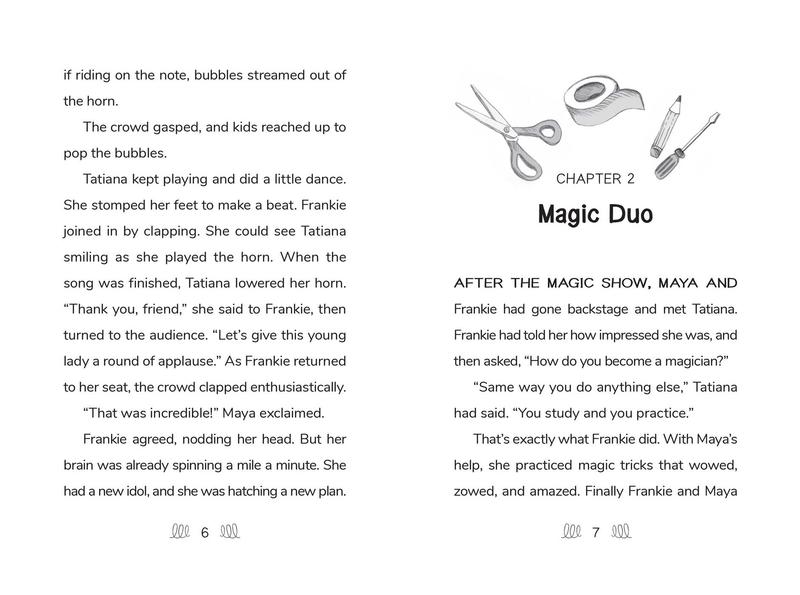 It’s time for the annual school talent show, and Frankie is excited to audition with her magic act! She wants to be just like her idol, Adelaide Herrmann, Queen of Magic. But on the day of the audition, Frankie’s best friend and Magician’s Assistant, Maya, gets a big, scary case of stage fright! How can Maya be Frankie’s helper on stage if she can’t bring herself to speak in front of their audience? It’s up to Frankie Sparks to invent just the perfect thing to help her best friend cope with the spotlight!