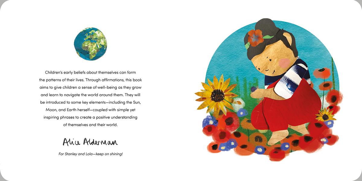 is a life-enhancing book of daily affirmations to build self-esteem in a new generation of children. A debut by artist and teacher Alice Alderman, these powerful phrases are what every young child needs to hear on a daily basis to develop a sense of self-worth and a connection to their natural world.