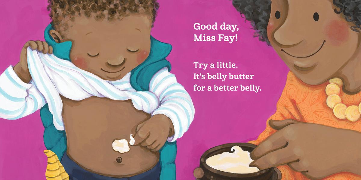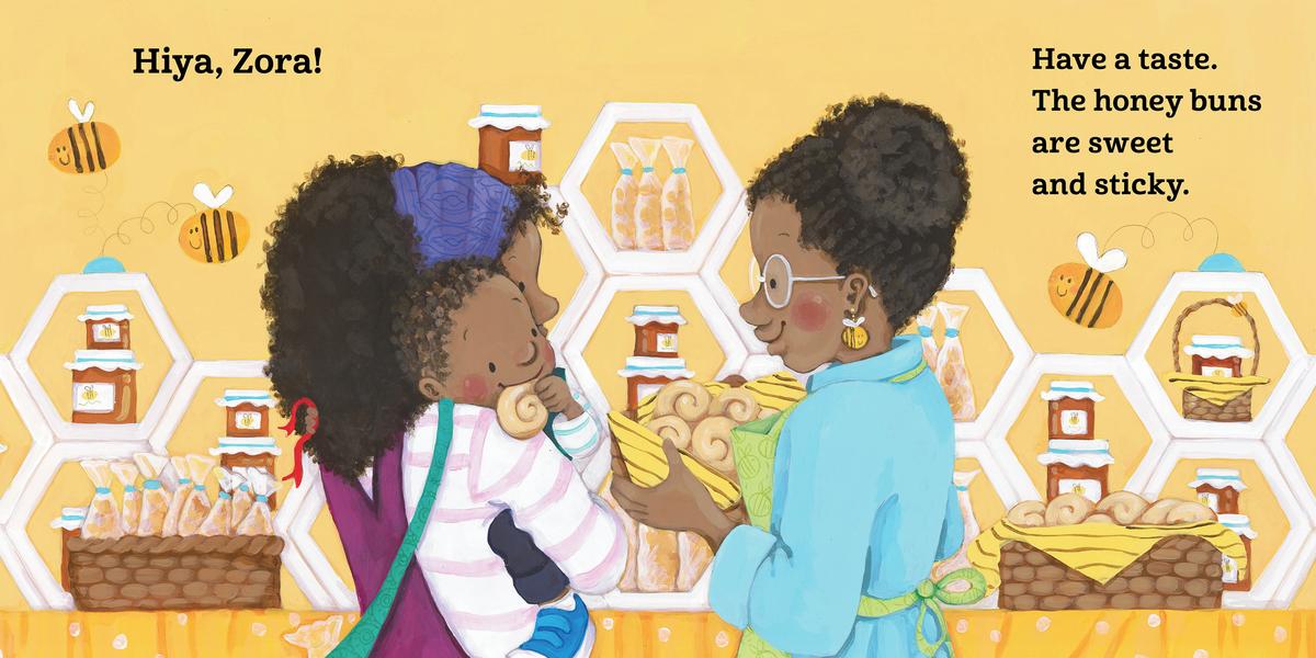 Leo and Mommy enjoy a busy day shopping at the local Saturday market. They visit the colorful stands and greet each vendor. They smell Mr. Adam's spices, taste honey buns made by Mommy's friend Zora, and try Miss Fay's body butter. When it's time to leave, Mommy's shopping bag is very heavy!
