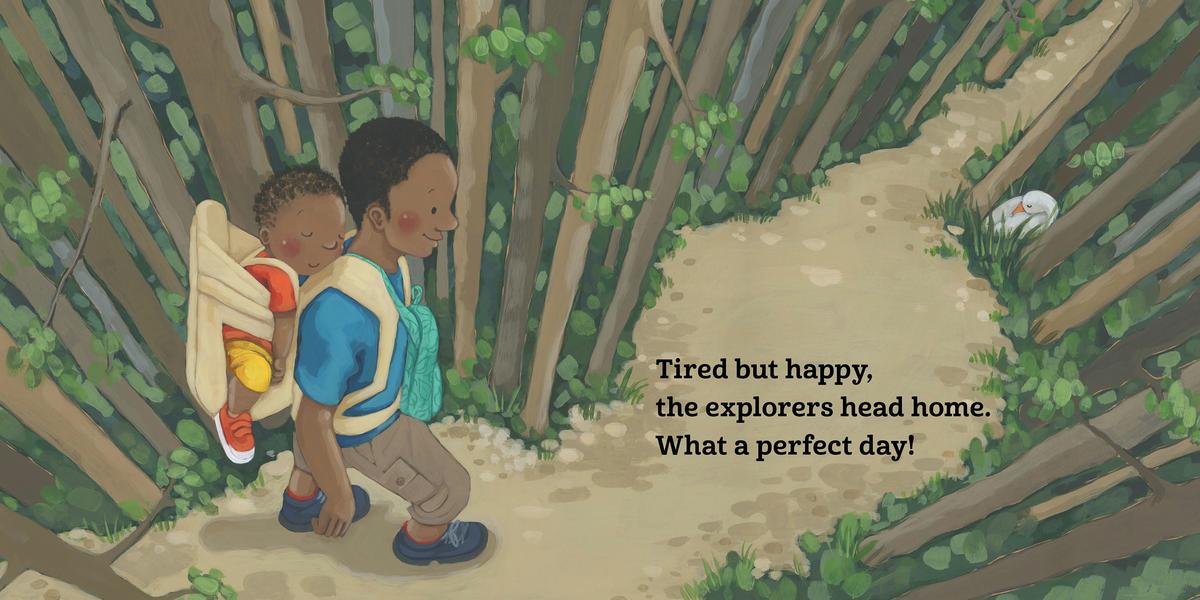 Leo is ready to hike. He and Daddy head out on the trail, observing all the wildlife along the way. They see tall trees, tiny flowers, and even some crawling bugs. Soon Leo is determined to explore on his own, following a busy bee and lingering to look at a slow worm. By the end of the hike, both explorers are tired, happy, and ready to return another day!