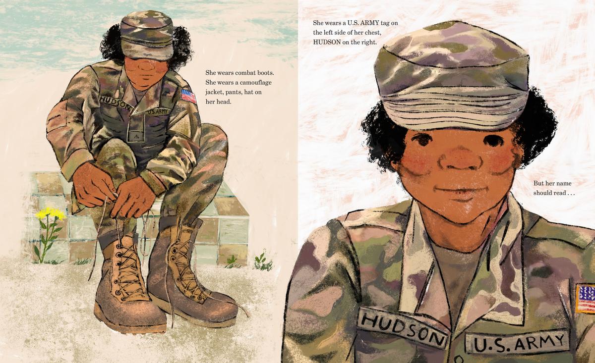 Momma wears combat boots, a camouflage jacket, and a U.S. ARMY tag on her chest. She is a fighter for her country’s freedom, but she is also a fighter for her family. When Momma comes home from a long deployment, however, something has changed. Our narrator, Momma’s “Baby," misses the big hugs, uniform fashion shows, and music mornings they used to share. And she really misses planting vegetables together. Now her Momma won’t even come out to the garden. But maybe, just maybe, she can bring the garden to Momma.