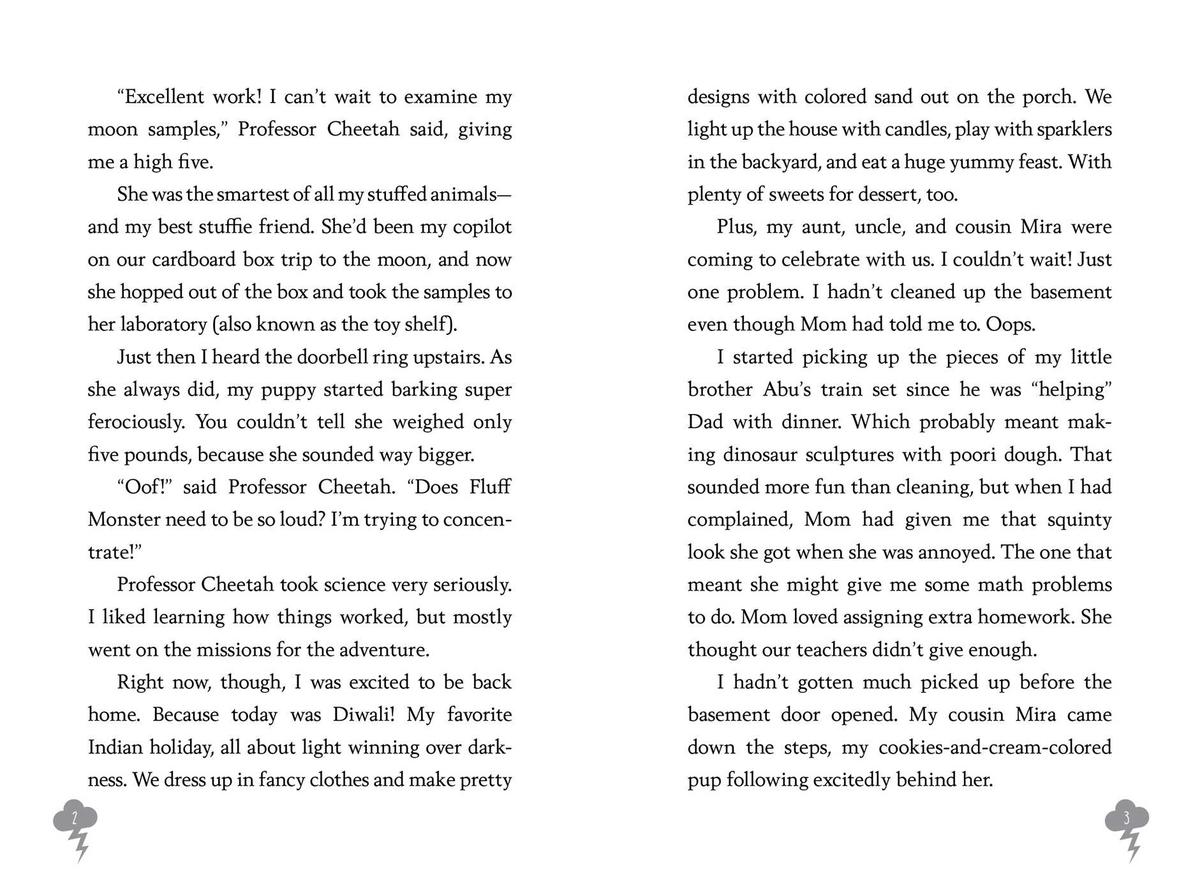 Sejal Sinha is looking forward to celebrating Diwali with her family. But when a hurricane appears, Sejal and her cousin Mira learn that the house is in danger from the imminent storm. With the help of Sejal’s favorite stuffed animal, Professor Cheetah, the two girls use Cardboard Box Magic to build their own Hurricane Hunter and fly into the eye of the hurricane!