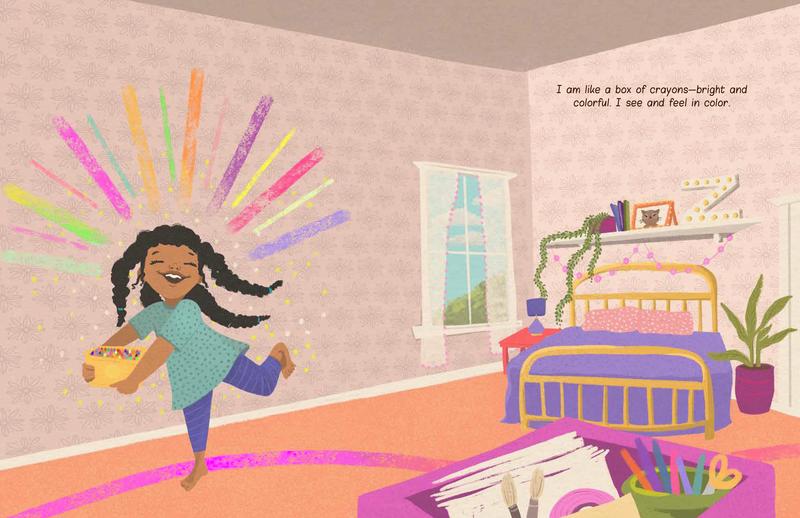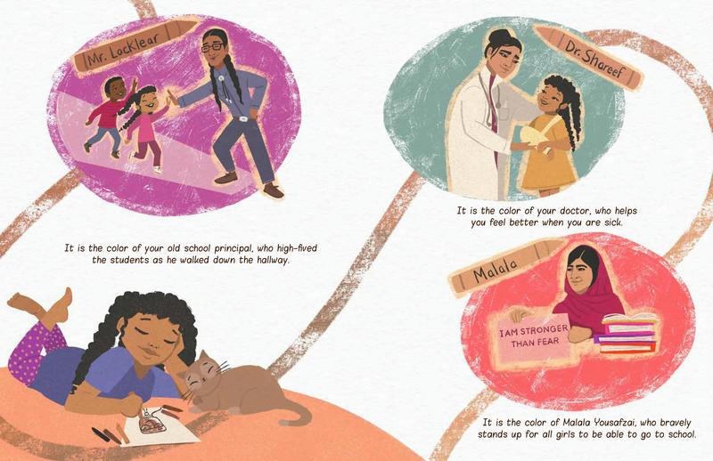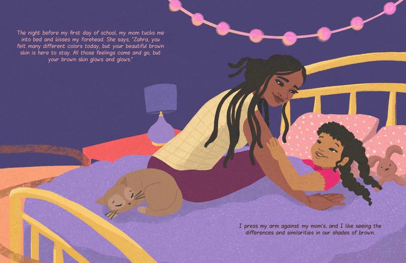 Zahra sees the world in vivid color. When she’s happy, she feels a razzle-dazzle pink in her hands. When she’s sad, she feels a deep blue behind her eyes. But she isn’t quite sure how to feel about the color of her skin. Kids at school tell her she is different, but her mother tells her to be proud! From a diverse team and based on extensive research,