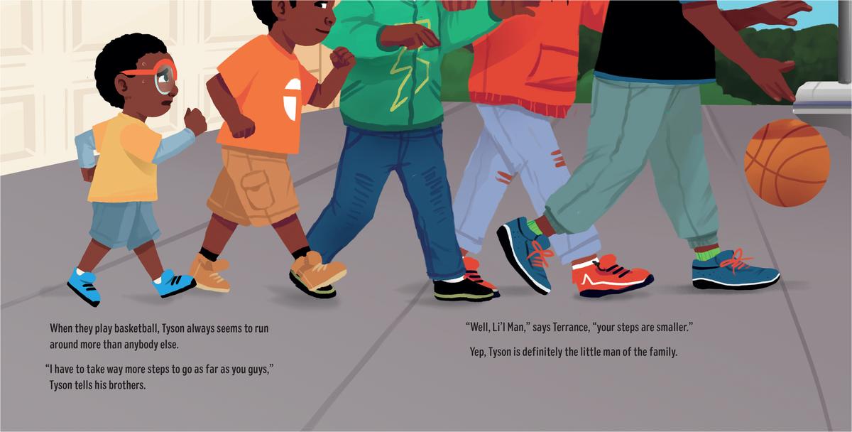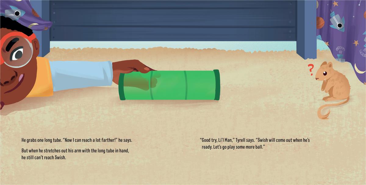 Tyson is the youngest-smaller than his four older brothers and always trying to keep up. But when the family's pet gerbil, Swish, goes missing, it's Tyson to the rescue! Tyson uses his knowledge of doubles, triples, and sizes to figure out a clever way to reach his beloved pet. A playful exploration of proportional thinking, featuring an author letter about the ubiquitous nature of math.